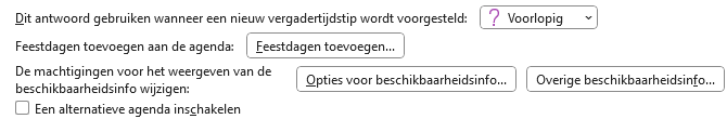 Om de feestdagen toe te voegen ga je naar Bestand, Opties, Agenda. Bij het kopje “Agenda-opties” vind je de optie “Feestdagen toevoegen aan de agenda”. Klik op “Feestdagen toevoegen…”.