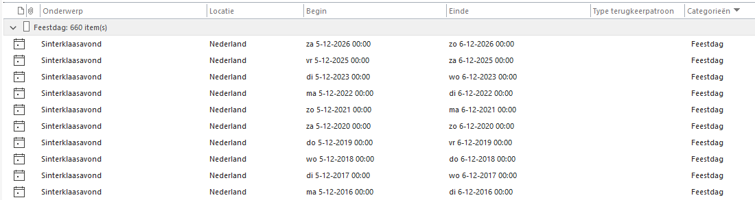 Daar kun je dan snel alle feestdagen verwijderen. Doe dit wel op een rustig moment en zorg ervoor dat je het juiste verwijderd. 😉