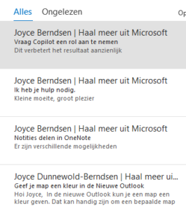 Met de functie “Postvak IN met prioriteit weergeven” (tabblad Beeld) wijzig je dit. Microsoft kijkt dan voor je welke e-mails prioriteit hebben en welke e-mails niet.