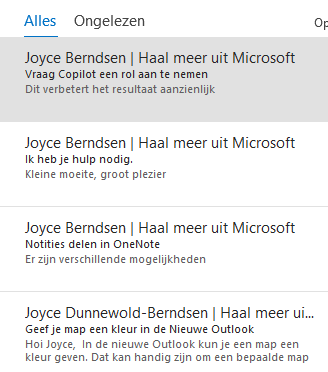 Standaard zie je alle e-mail in je inbox en kun je apart kiezen voor alle ongelezen e-mail.