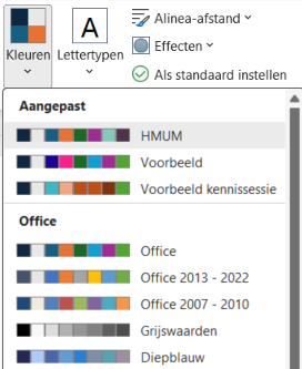 Het mooie is dat als je in Word het thema bepaalt, deze ook direct in de andere programma’s te vinden zijn.