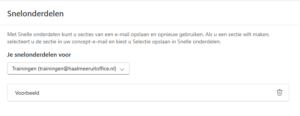 Je voegt het Snelonderdeel voor jezelf toe en kunt dit niet delen met anderen. Natuurlijk kun je de tekst wel in een e-mail naar je collega sturen, zodat diegene dit voor zichzelf toe kan voegen.