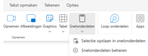 Klik op tabblad Invoegen op Snelonderdelen en kies voor “Selectie opslaan in snelonderdelen”.