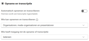 Nieuw is dat je hier ook bepaald wie er opname krijgt tot de opname en transcriptie: