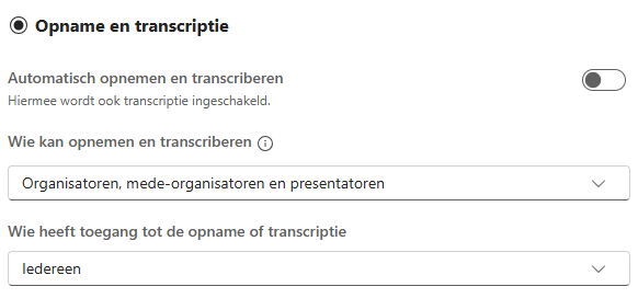 Nieuw is dat je hier ook bepaald wie er opname krijgt tot de opname en transcriptie: